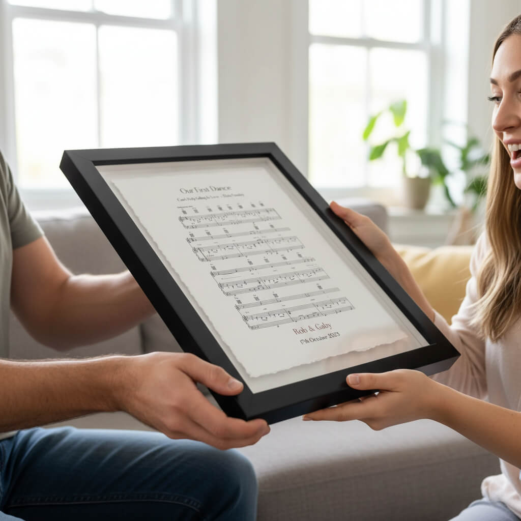 Choose a frame and have it professionally framed in the UK in a bespoke box frame including float mounting the sheet music. The frame is specially designed with white spacer to add depth to the artwork and the float mounting is perfect for displaying the edges of a print. The frame is made of solid wood sustainably sourced and FSC® certified.